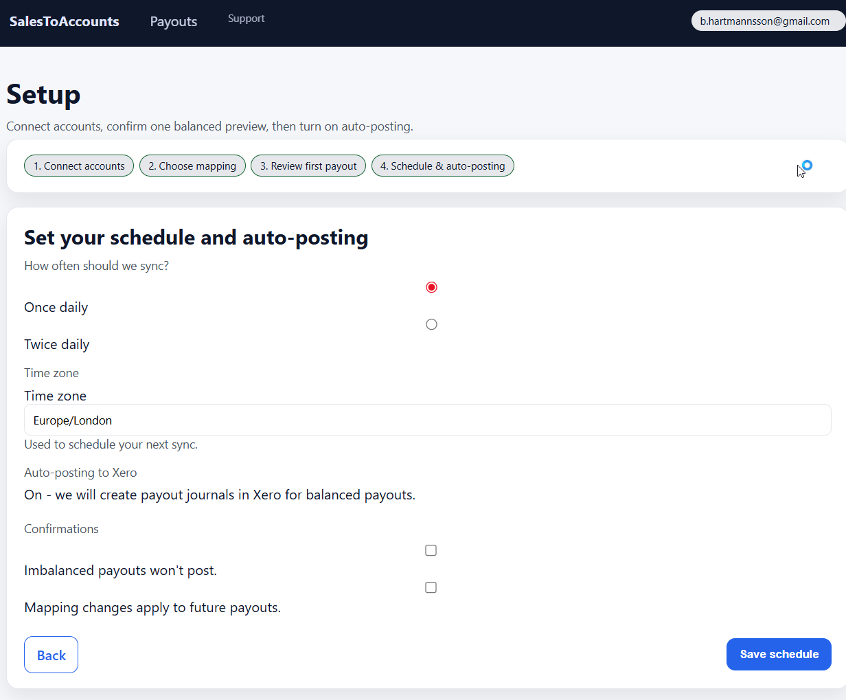 The setup is deliberately simple: get the connections in place, check one real payout, then decide whether you are comfortable relying on it for future payouts.