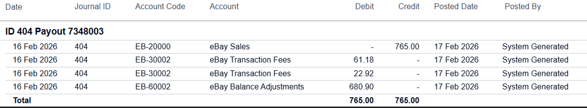 That gives you a practical audit trail: the Xero posting can be traced back to the eBay payout reference and the processing context used to create it.